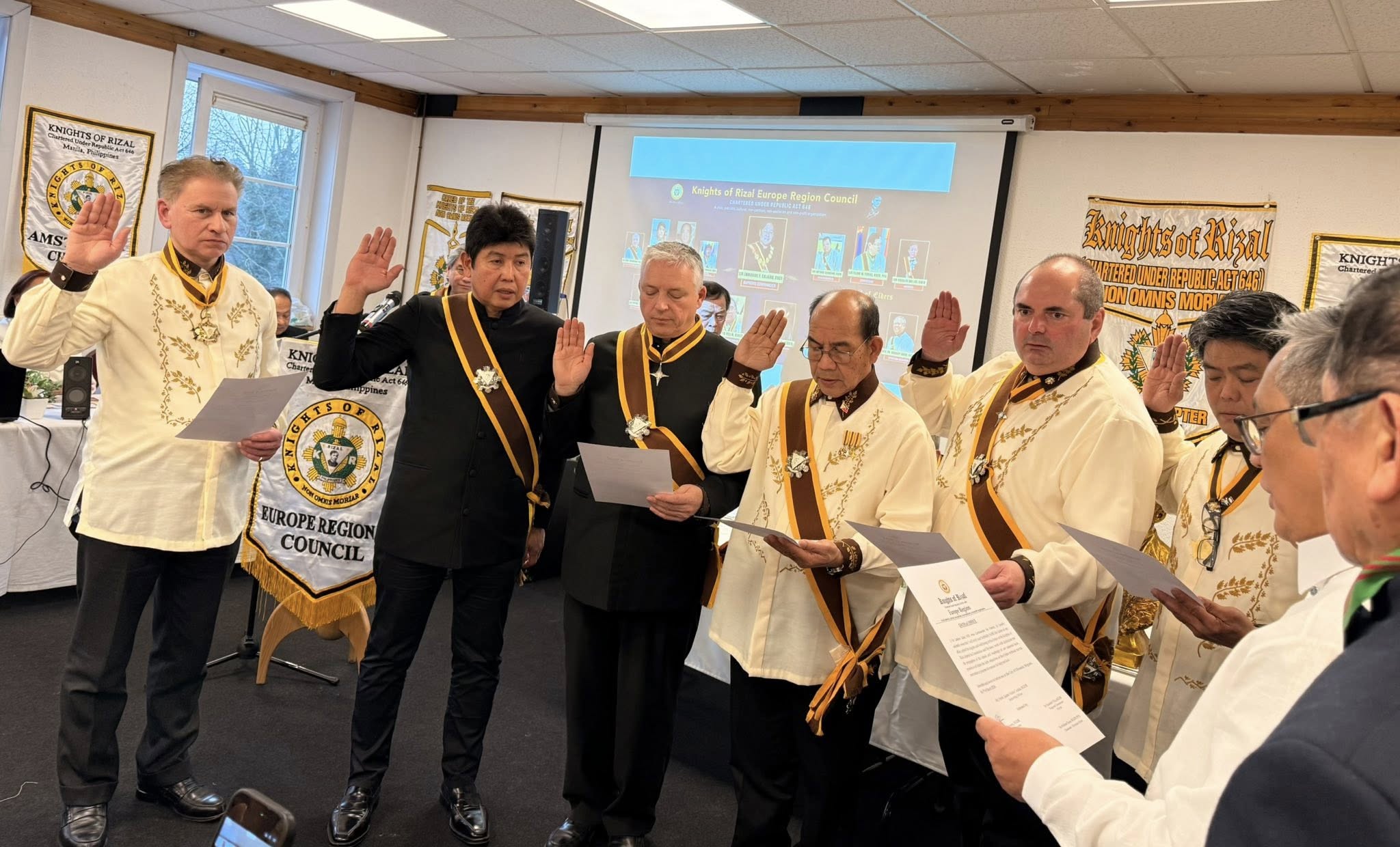 The ceremonial oath-taking was presided over by Europe Regional Commander Sir Juanito Villa, KGOR, assisted by Deputy Regional Commander Sir Generoso Rebong, KGOR. The oath of office for newly appointed regional officers was administered by Sir Ambassador Jaime V. Ledda, KGOR, Philippine Ambassador to Belgium and the European Union.